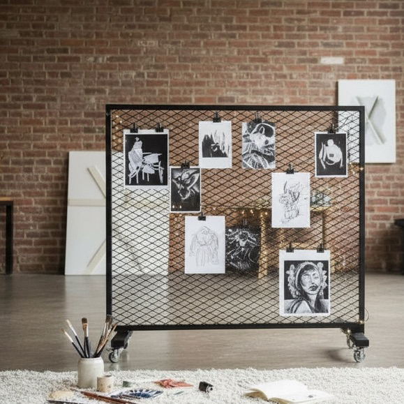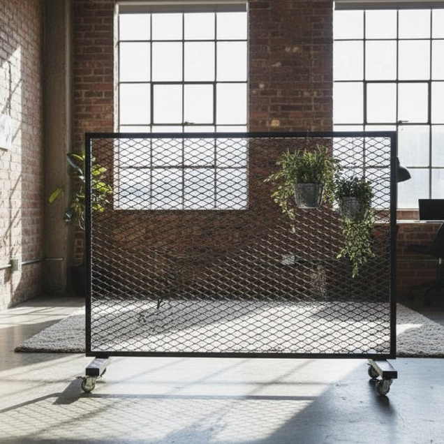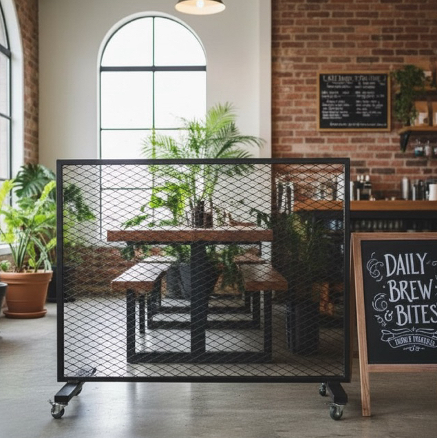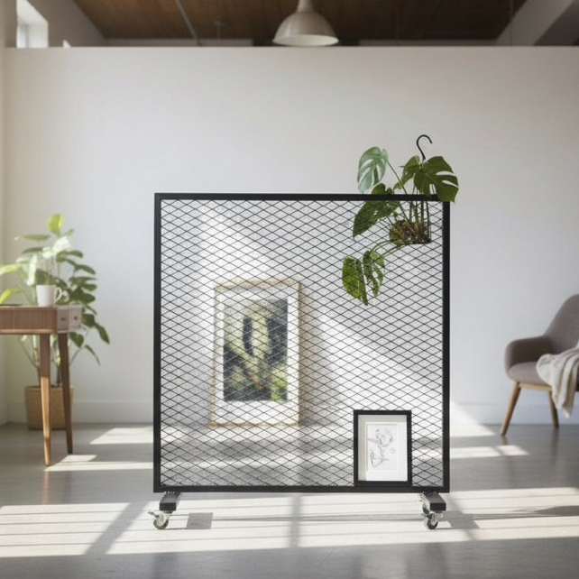 工業風鐵網移動隔間架|附輪展示架/植栽牆/空間分隔|