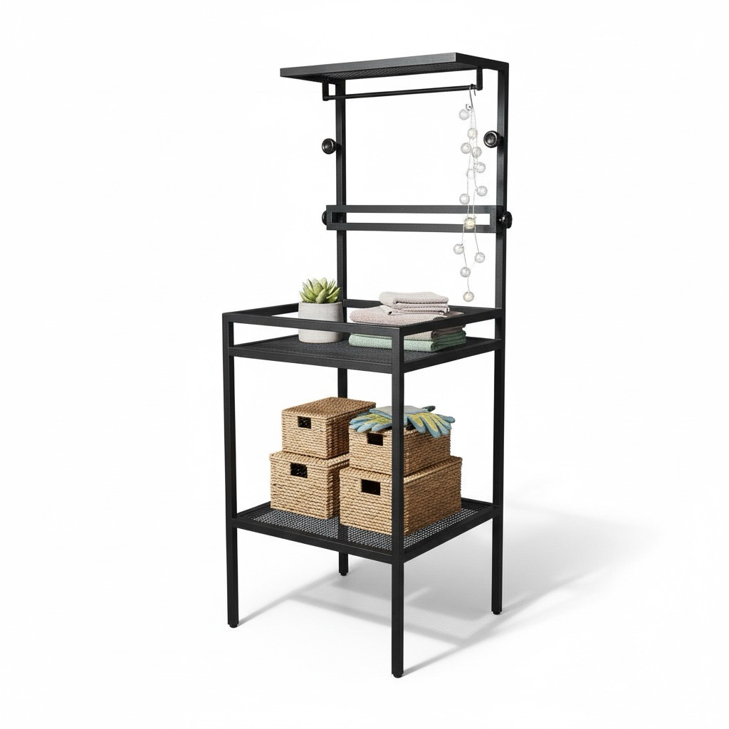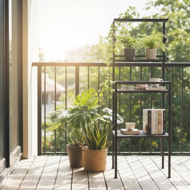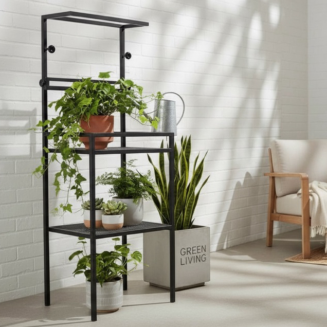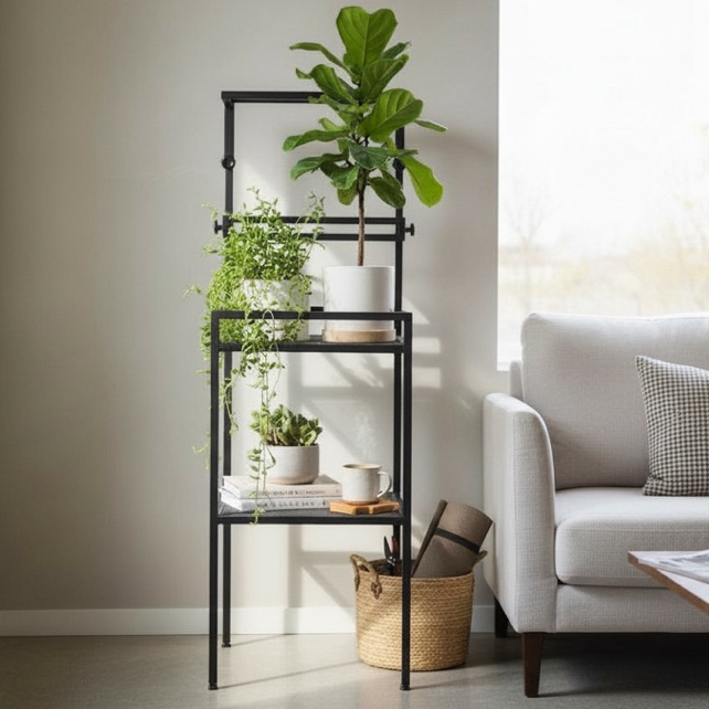 工業風鐵製植物架|一體成型免組裝・上層小層板可調