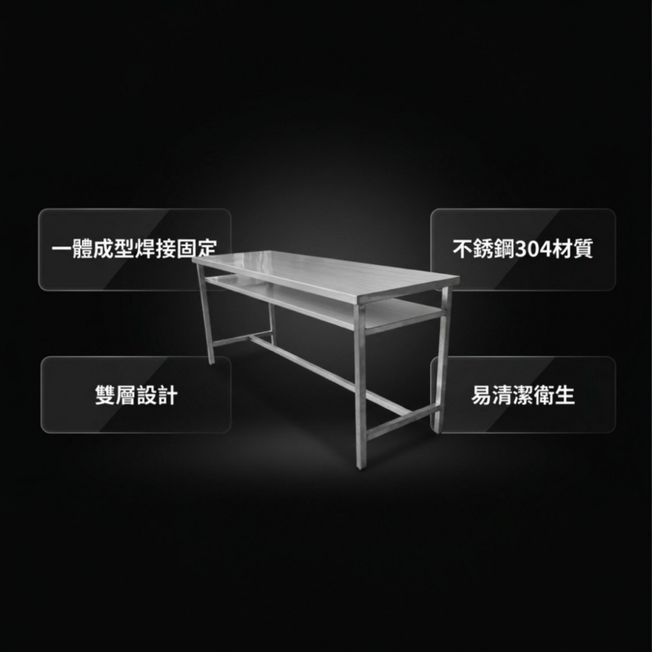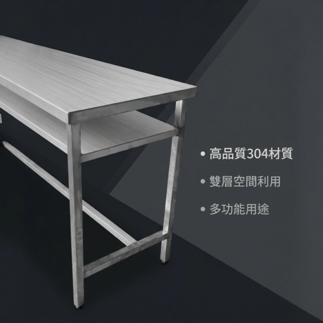 不銹鋼桌、白鐵工作桌、雙層、用餐桌子、活動場地桌、廚房料理、食品加工、醫療場所、實驗室、攤販、露營