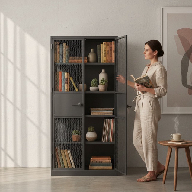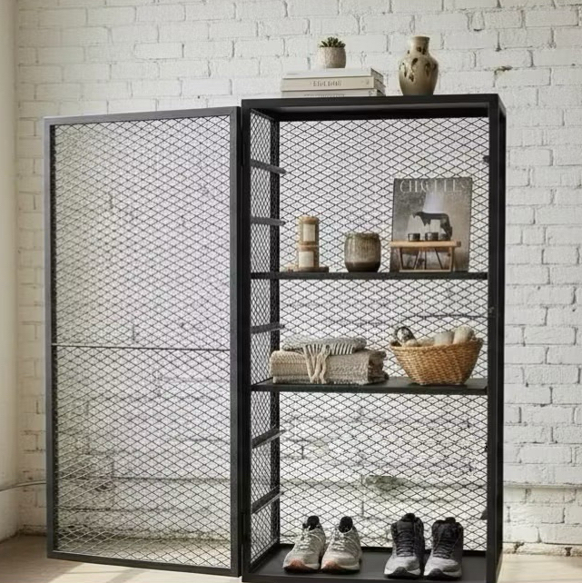 鐵製網櫃收納架|通風可視|多層置物櫃|耐重防鏽現代風鐵製網櫃收納|細緻網格|多層置物|耐用設計
