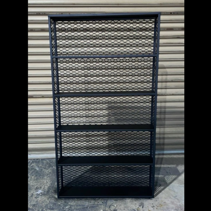 READ MORE工業風 書架 鐵製 書架 金屬 網格 書櫃 書架工業風金屬格紋書架 90×20×170cm|免組裝大容量收納架 -