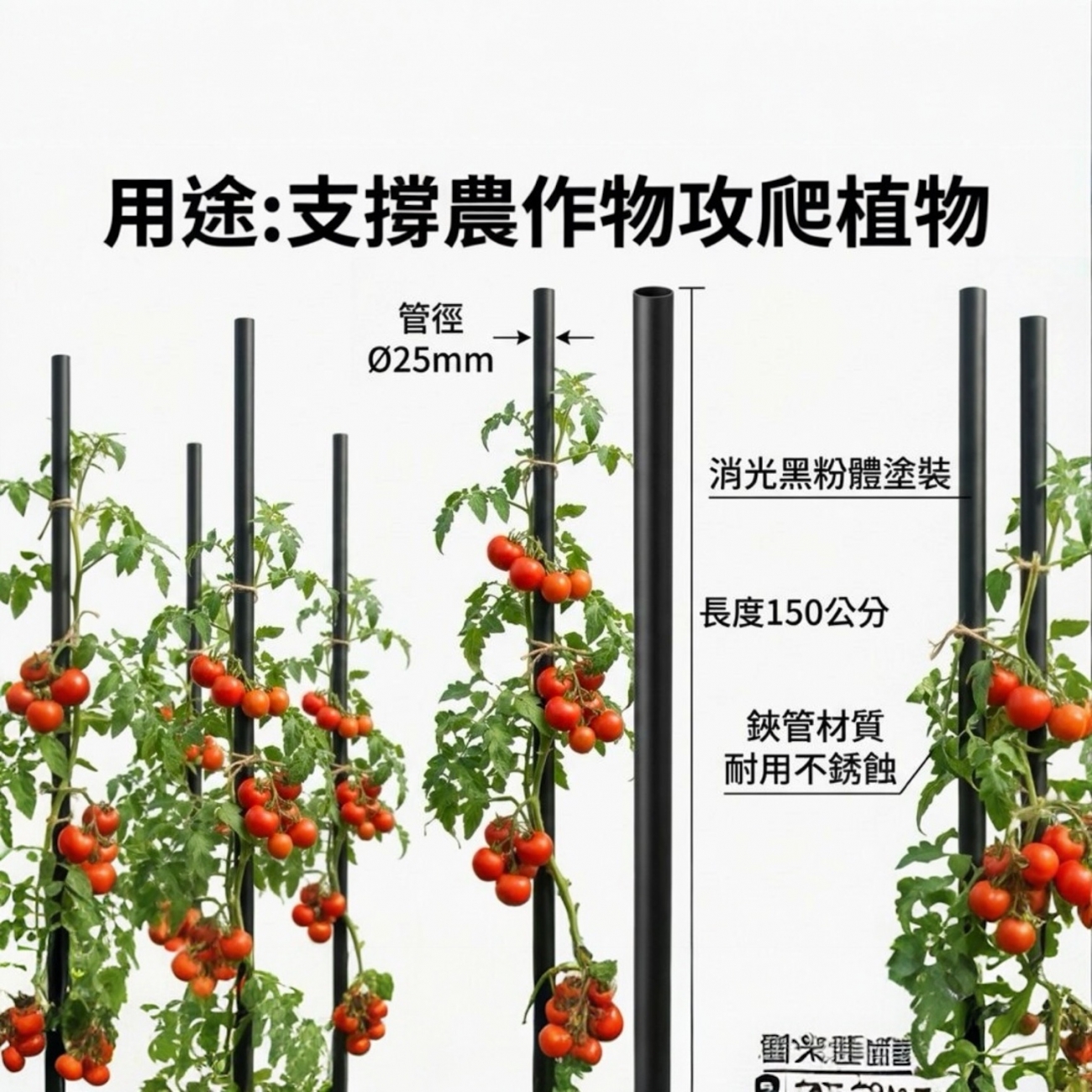 Ø25 消光黑錏管圓管|150cm 現貨|粉體塗裝|遮光防青苔|工程/戶外用鐵管 種植園藝